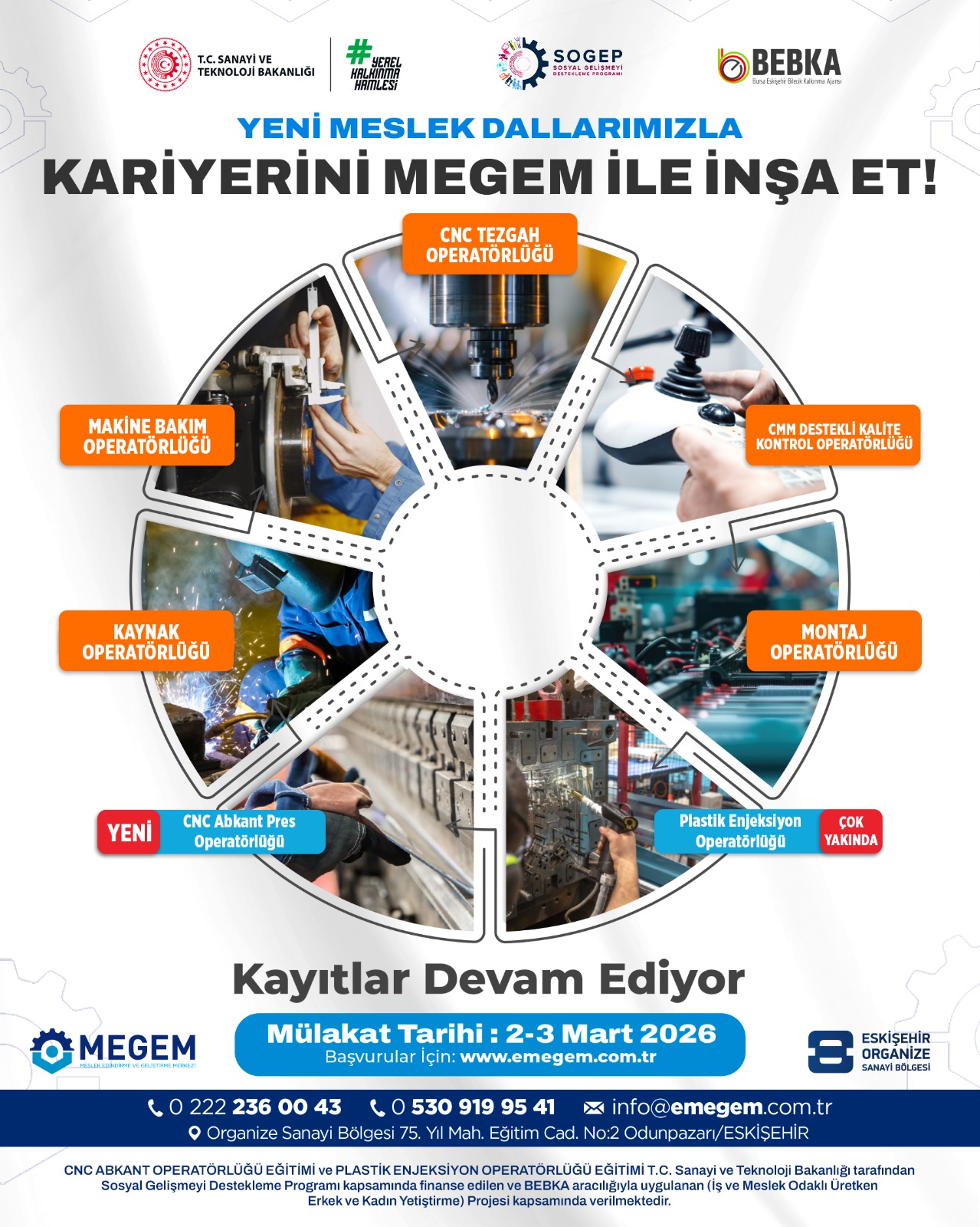 Eskişehir Organize Sanayi Bölgesi'nin Meslek Edindirme ve Geliştirme Merkezi (MEGEM) eğitim birimidir. Geçmişte birçok mezun veren MEGEM, sanayicilerin kalifiye çalışan ihtiyacını karşılamaya yönetilik çalışmalar yürütmektedir.